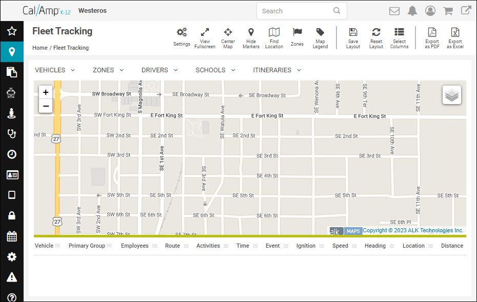 Note: To make the Vehicles list disappear, click anywhere outside of the list (or click Vehicles again).