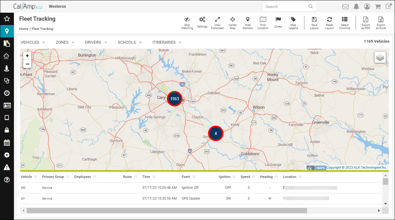 Fleet Tracking will automatically begin watching the vehicles in real time (called Watch Live). To turn off the Watch Live feature, click