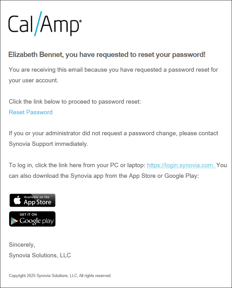 Note: If you don’t receive that email, check your junk mail folder. If the email isn't there, you should contact CalAmp Support at 1-877-796-6842, as your organization might be blocking mail from our domain.
