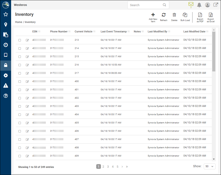 : Begins the process of adding multiple inventory items to your Synovia account. (We recommend guidance when bulk loading items. Please contact your Synovia project manager or fleet advisor for details.)