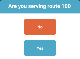 - When you reach the point that you are asked either if you are serving the route associated with the selected bus (if there is one) or if you are driving a route, tap No (in both dialog boxes, if both appear).