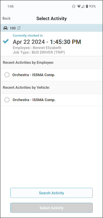 - Tap the job type for the activity (such as Bus Driver [Trip]) in this example).