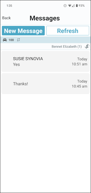 You'll be returned to the Messages screen, which will display the message you just sent.